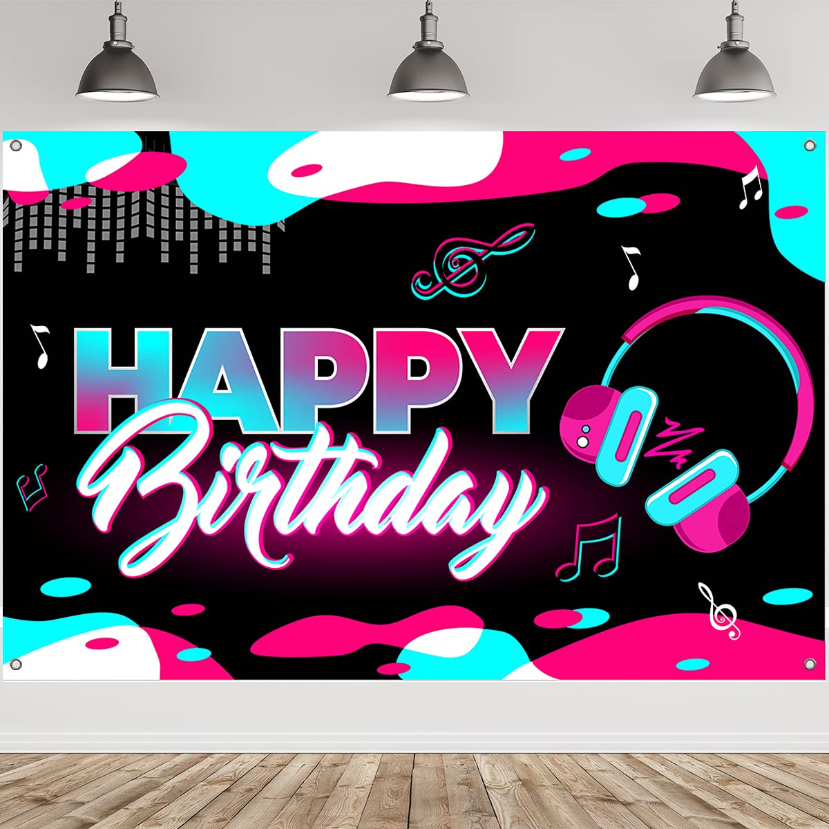 Amazon Com Happy Birthday Backdrop Music Party Background Photo Booth Banner Official Teenager Banner Tik Tok Party Decorations Video Studio Banner 5x3ft Toys Games